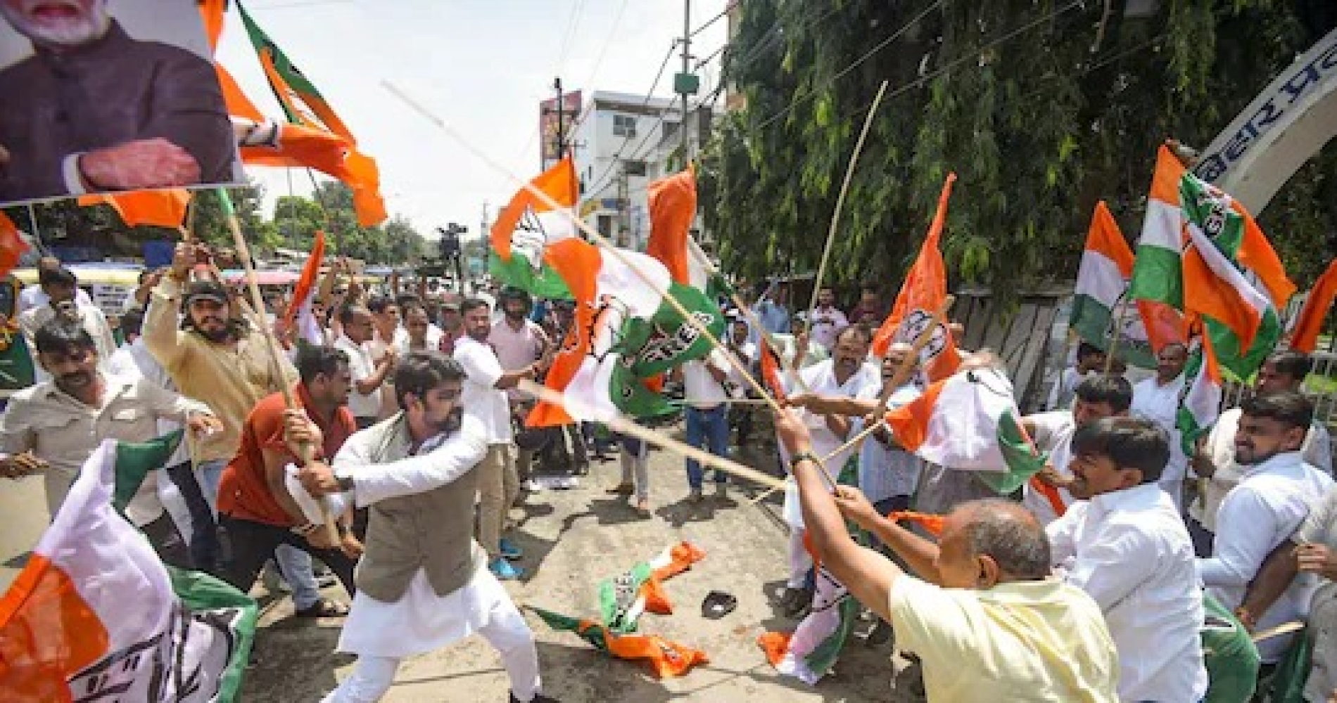 कांग्रेस दफ्तर के बाहर हंगामा