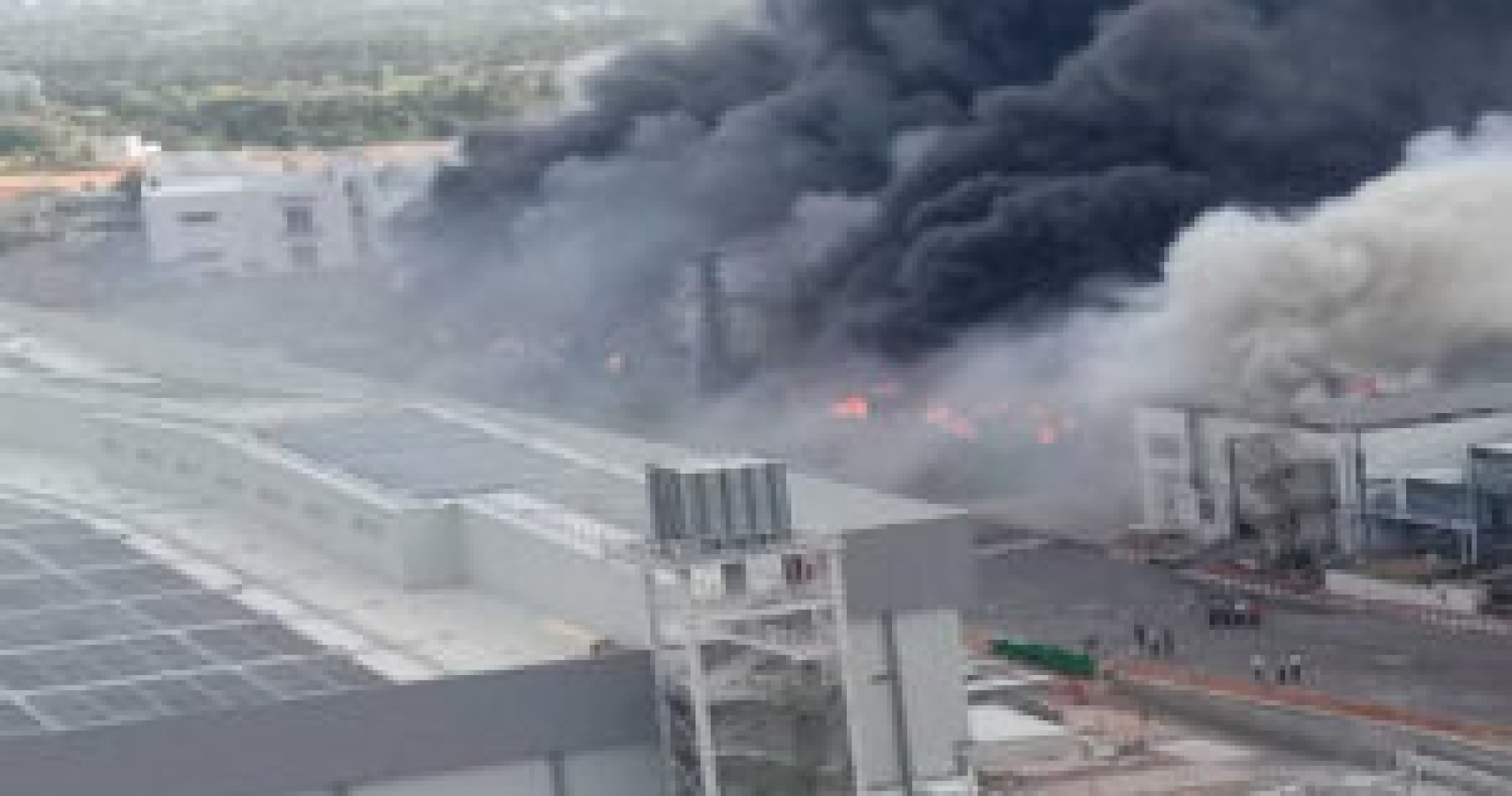 तमिलनाडु : कृष्णागिरी जिले के होसुर के पास स्थित टाटा इलेक्ट्रॉनिक्स मैन्युफैक्चरिंग प्लांट में आज सुबह भीषण आग लग गई, जिससे पूरे इलाके में अफरा-तफरी मच गई। इस आग के कारण आसमान में घने काले धुएं के गुबार छा गए, जिससे क्षेत्र के लोग दहशत में आ गए। प्लांट में आग लगने की घटना सुबह के वक्त घटी जब प्लांट के अंदर कई कर्मचारी ड्यूटी पर थे।